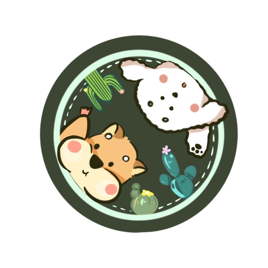 - 貼紙:貼紙就可以貼在筆電、筆記本、平板等等.其中一款圓形貼紙會貼在多肉植物的盆栽上.我們有設計五款貼紙.