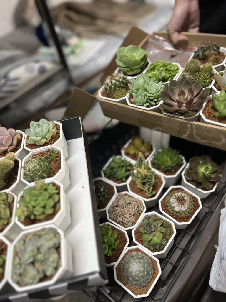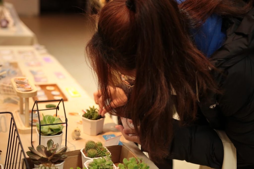 在海大雨光之村市集里販賣的多肉植物,有30種不同型態的植株,每個選擇代表著每個人的個性、以及對逐漸茁壯的多肉抱有的期待.