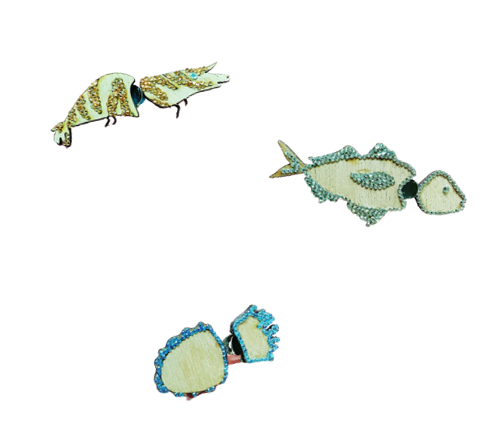 本次的設計理念核心是以“實用”為主軸,想要將文創產品脫離純觀賞性或是娛樂性的固有想法,塑造成不只是擺設,在具觀賞性的基礎上,可以兼顧效用,而更希望能夠在這樣的基礎上,再能夠透過受用客戶的型揍而進行傳播,由詞更深入地做發想,能夠做的商品會以衣物配件或是可活動配飾作為產品發展發想,最後則從這個方向挑揀出比較少拿來發展的要件,而最後選擇以收腰扣環這個比較新穎的產品,來作為此次基隆四季漁產文創商品的最終成品。